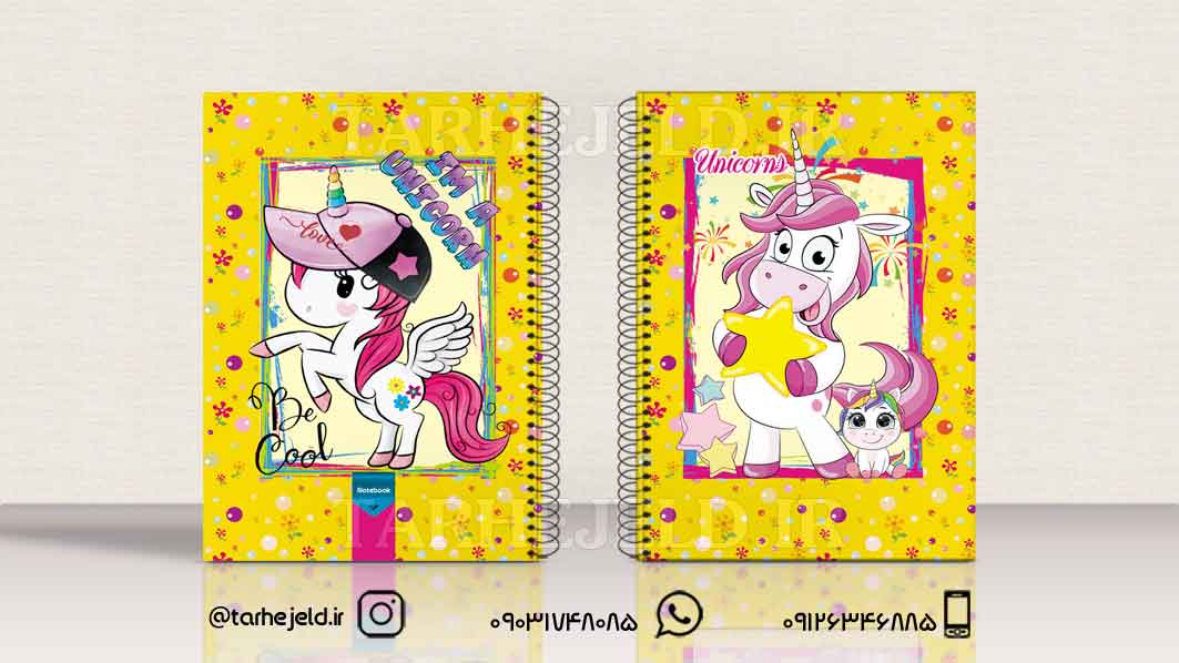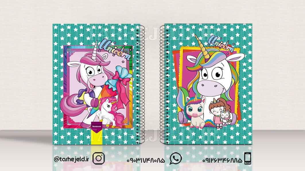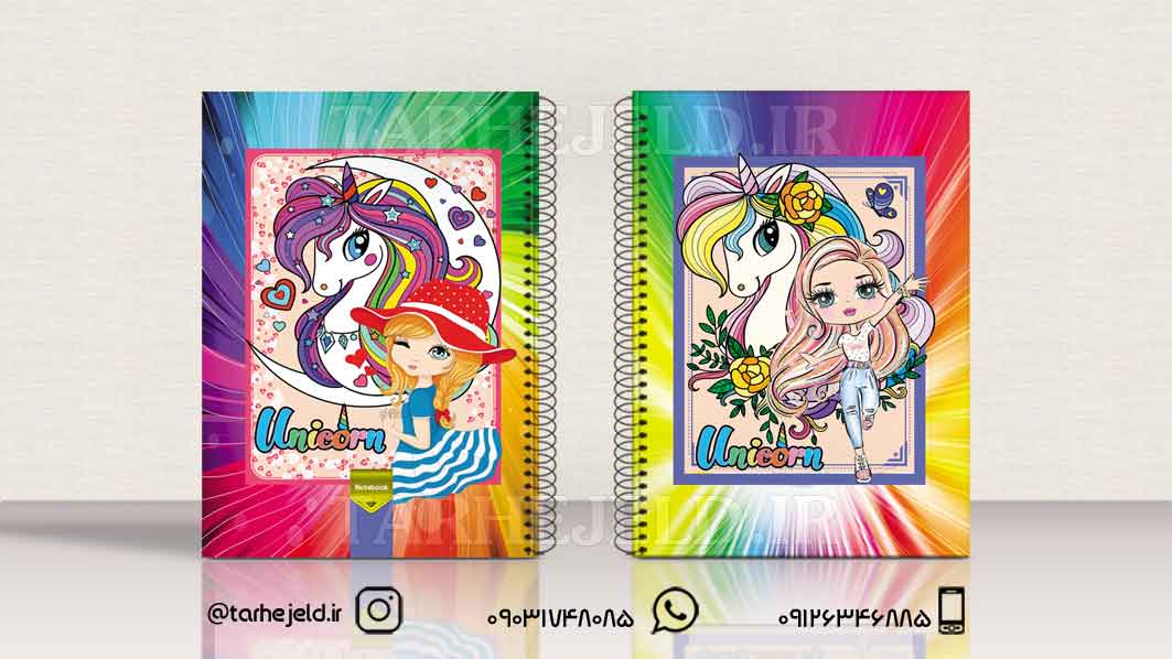 طرح لایه باز جلد دفتر کیتی و تک شاخ کد01455