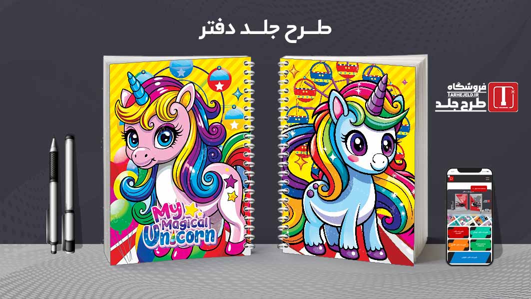 دانلود طرح لایه باز جلد دفتر مشق تک شاخ کد09933