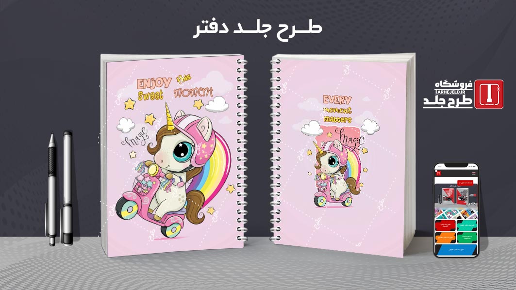 دانلود طرح لایه باز جلد دفتر مشق تک شاخ کد 010297