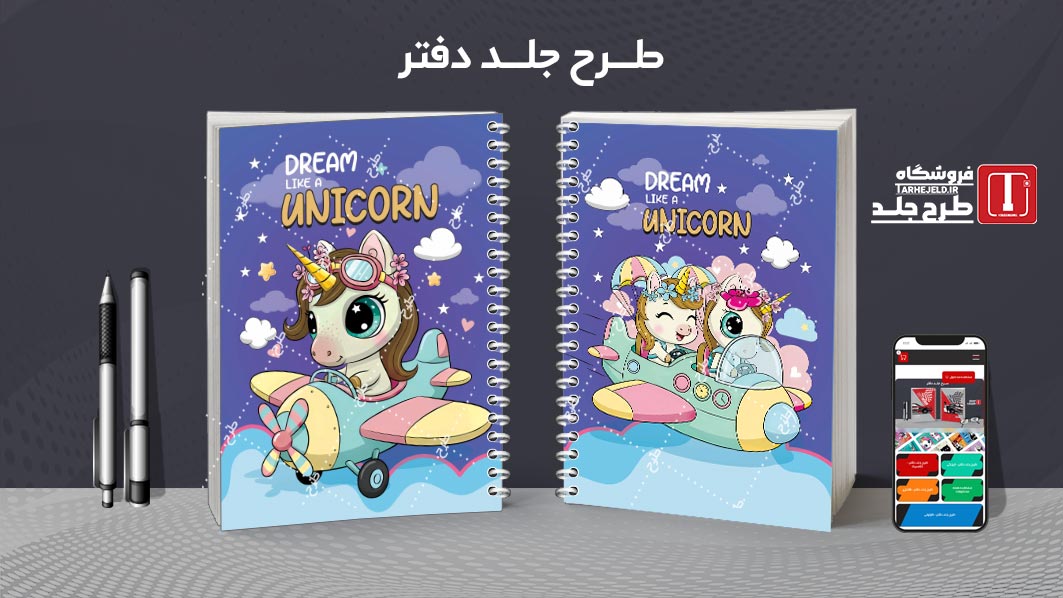 دانلود طرح لایه باز جلد دفتر مشق تک شاخ کد 010299