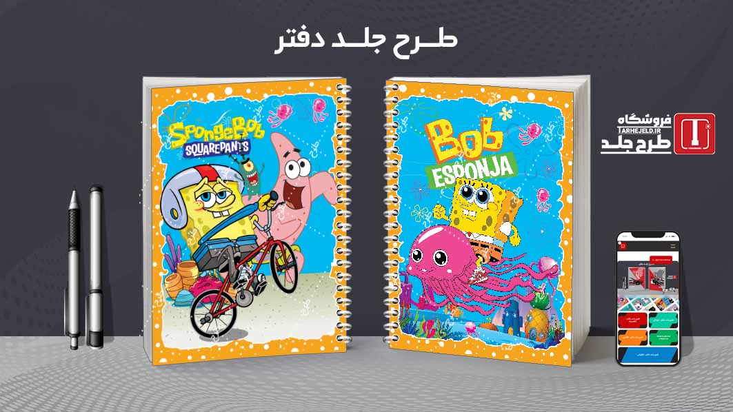 طرح لایه باز جلد دفتر مشق باب اسفنجی کد08477