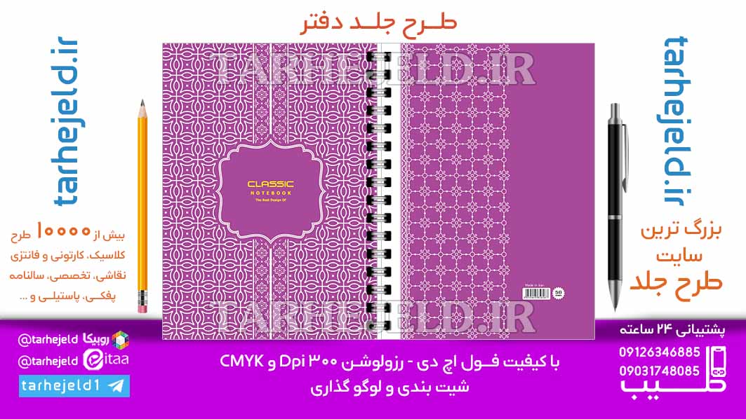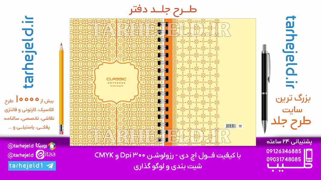طرح لایه باز جلد دفتر تحصیلی کلاسیک (3258 فایل)
