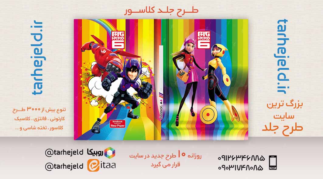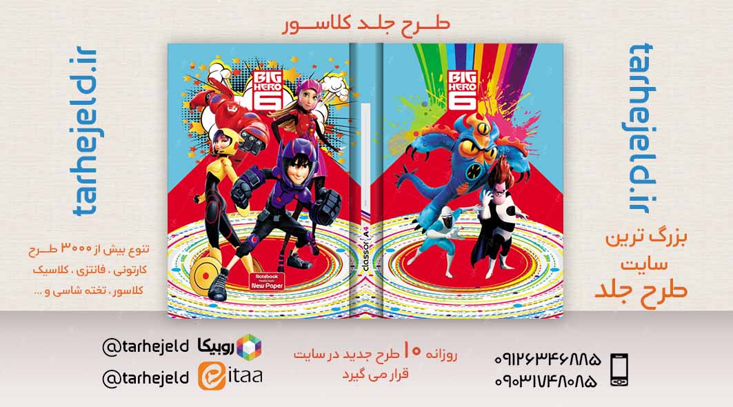 طرح لایه باز جلد کلاسور 6 قهرمان بزرگ کد02435