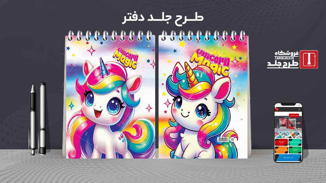 طرح لایه باز جلد دفتر یادداشت تک شاخ کد07471