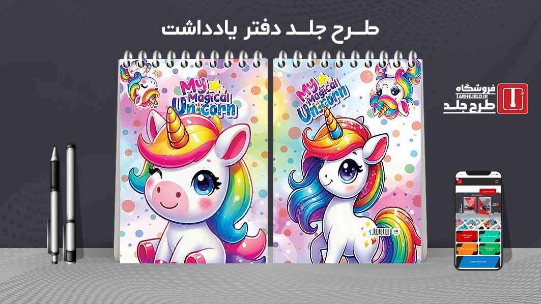 طرح لایه باز جلد دفتر یادداشت تک شاخ کد07478