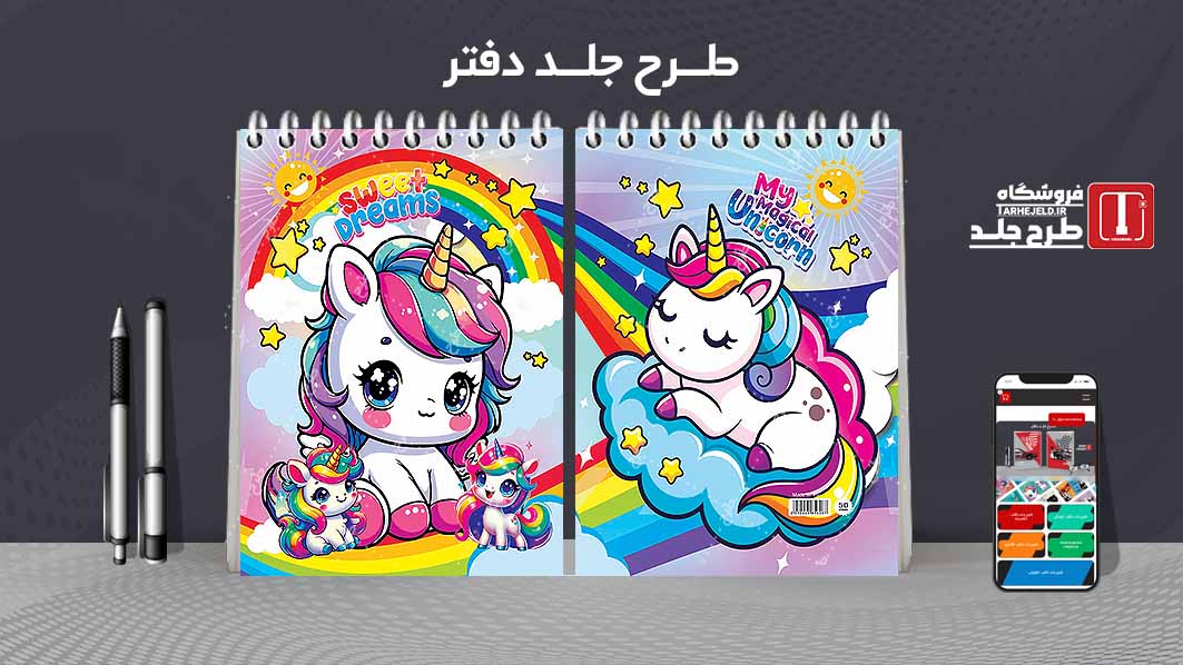 طرح لایه باز جلد دفتر یادداشت تک شاخ کد07469