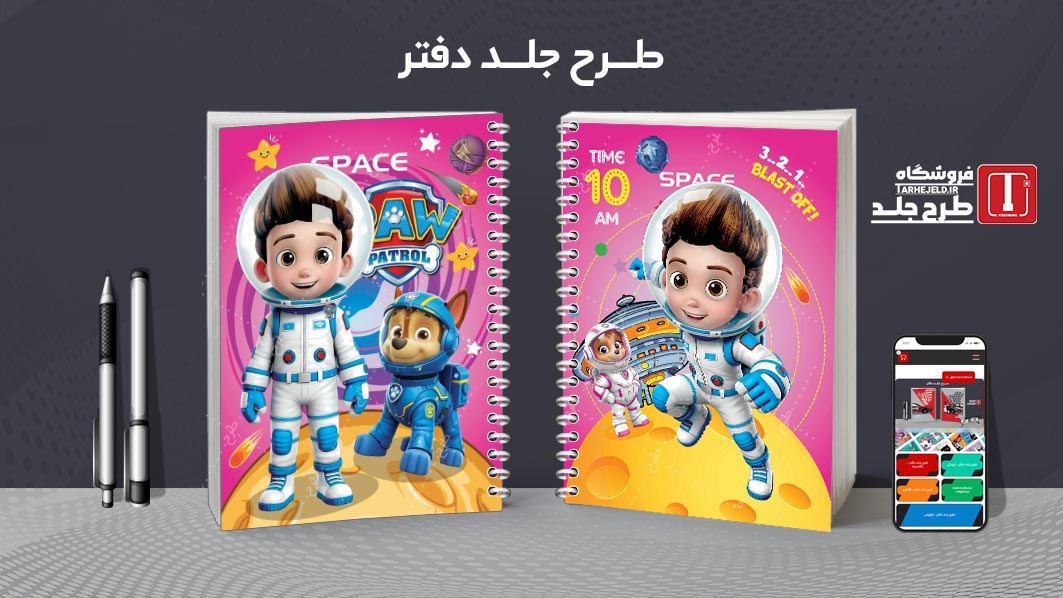 دانلود طرح لایه باز جلد دفتر مشق فضانورد کد 010156
